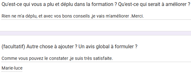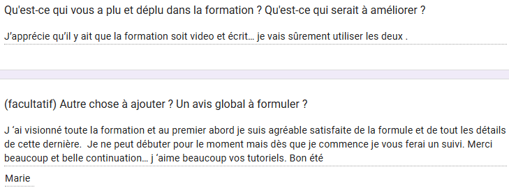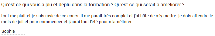 (qu'importe la raison, je vous rembourse. C'est juste pour que je sache ce qui ne vous a pas plu dans ma formation pour l'améliorer davantage)